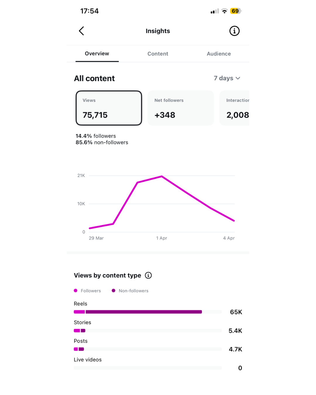 - 75,000+ views generated within the first 7 days of content strategy implementation