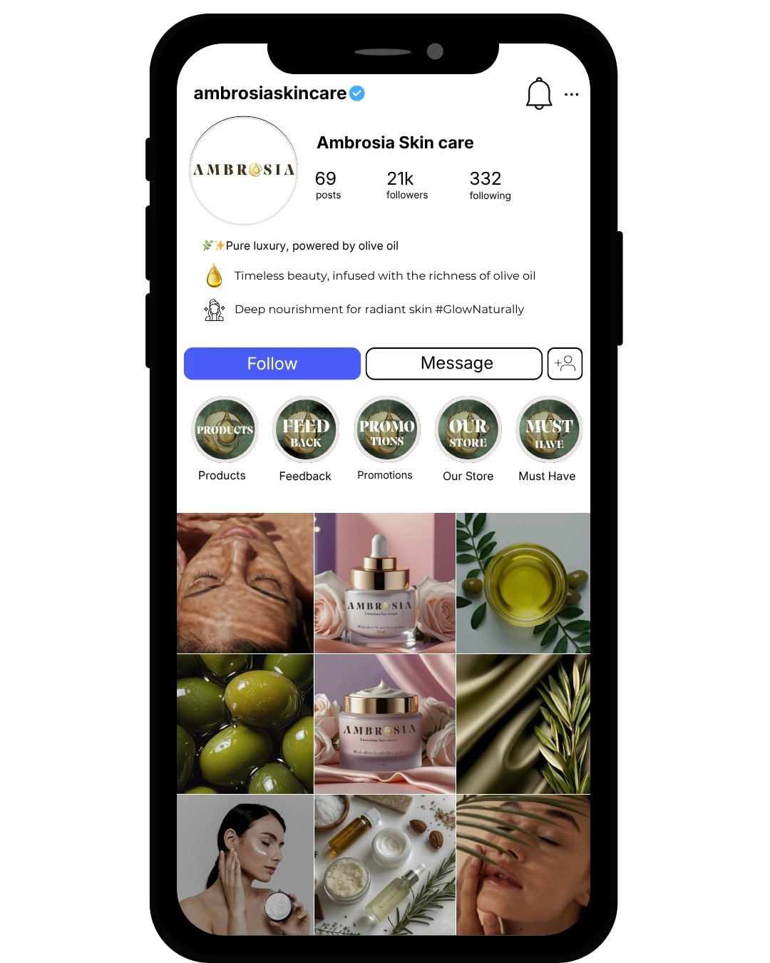 Ambrosia achieved clear differentiation within the premium botanical skincare segment, supported by stronger brand credibility through an ingredient-focused positioning. The refined visual system elevated perceived product value while creating a more consistent and recognizable presence across all digital touchpoints. As a result, the brand strengthened audience trust and engagement, establishing a clear and sophisticated premium identity in the market.
